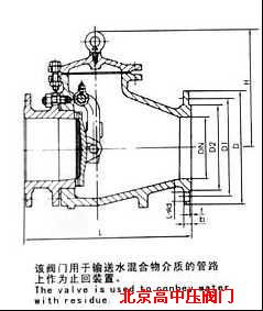 1、該閥門用于輸送渣水混合物介質的管路上作為止回裝置。